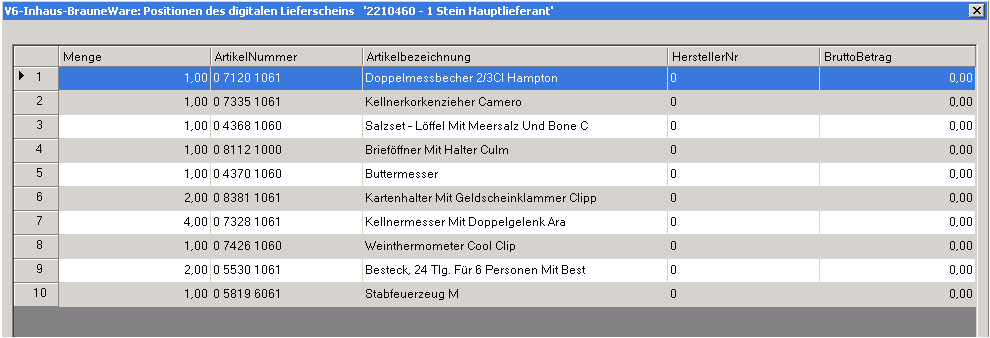 Vorschau (F8) bietet die Möglichkeit, sich alle Positionen des markierten Lieferscheins anzeigen zu lassen: